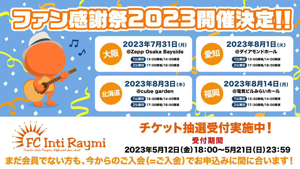 【新規入会キャンペーン実施中!】「FCインティライミ(年会費制) ファン感謝祭2023」チケット抽選受付スタート!
